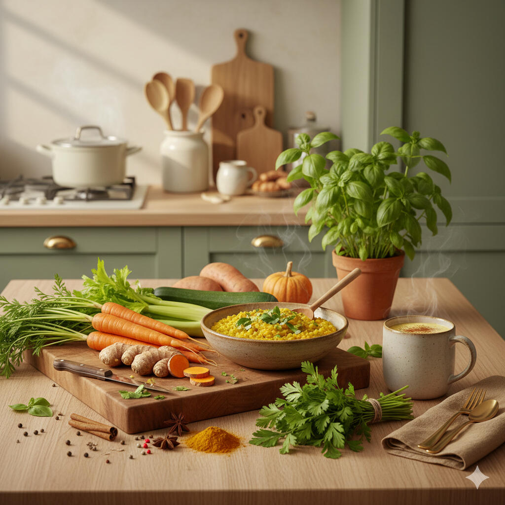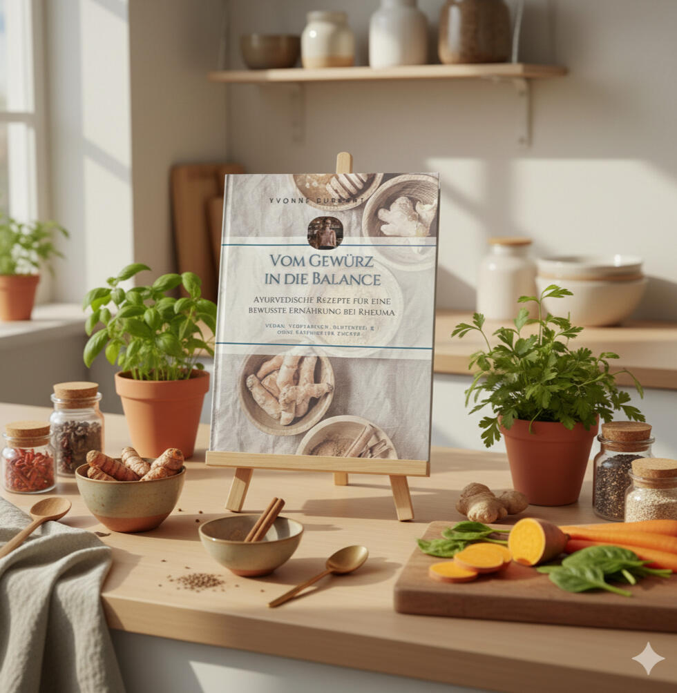 "Vom Gewürz in die Balance" ist ein besonderes Kochbuch, entstanden aus meinem Weg eigenen Weg mit Rheuma und Ayurveda, und dem Wunsch nach mehr Achtsamkeit im Alltag.Du findest darin pflanzenbasierte, saisonale Rezepte ohne raffinierten Zucker, Gerichte, die nähren, wärmen und leicht umzusetzen sind.Für eine bewusste Ernährung mit und auch ohne Rheuma.Vom Frühstück bis zum Abendessen, von Porridge bis Bowl.Ergänzt werden sie durch kleine Impulse zu Gewürzen, Zutatenkombinationen und liebevollen Routinen zum Essen.Entdecke Kochen wieder als Teil deiner Selbstfürsorge.